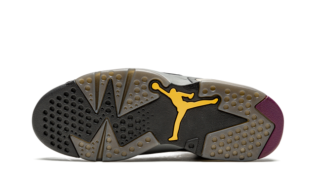 The upper of the Jordan 6 Retro "Bordeaux" is made from premium leather and soft suede, with a black base that is contrasted by touches of burgundy (Bordeaux) on the heel panel, side and upper. These burgundy details, combined with the mint green on the Jumpman and the other colorful elements of the sneaker, give it a vibrant and modern look. The choice of colors, which mixes the traditional with the bold, brings a subtle elegance that is at the same time full of personality.